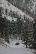 Tom driving up the hill to bring Michelle, the photographer, back down since she was waiting up top while Mike and Brian got stu